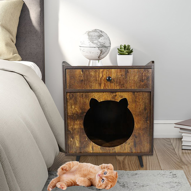 2. Yaratıcı Mobilya Tasarımı: Benzersiz Retro TV şekli Pratik Çekmece Depolama, sadece kedinin rahat kabini değil, aynı zamanda oturma odası yan masası olarak da kullanılabilir, çok amaçlı yer kaplamaz.