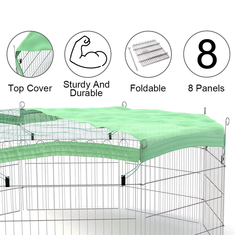 1. Çok yönlü koruma: Metal Dog Playpen'in nefes alabilen ve güneş geçirmez üst kapak tasarımı yaz aylarında evcil hayvanlar için rahat bir gölge sağlar. Slayt Kilidi Güvenlik Kapısı Tasarımı, uygun erişim ve korumayı birleştirin.