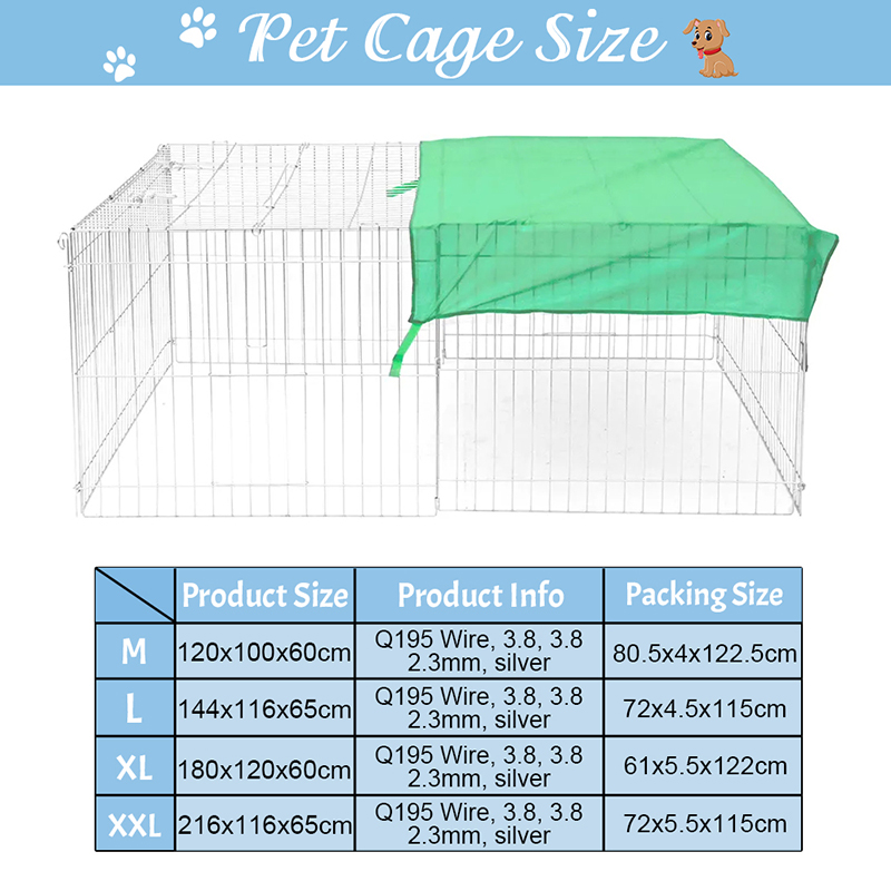 1. Genel Koruma: Metal Köpek Playpen'in nefes alabilen güneş kremi üst tasarımı, yaz aylarında evcil hayvanlar için rahat bir gölge sağlar. Slayt kilitleme güvenlik kapısı tasarımı, kolay erişim ve korumayı birleştirin.