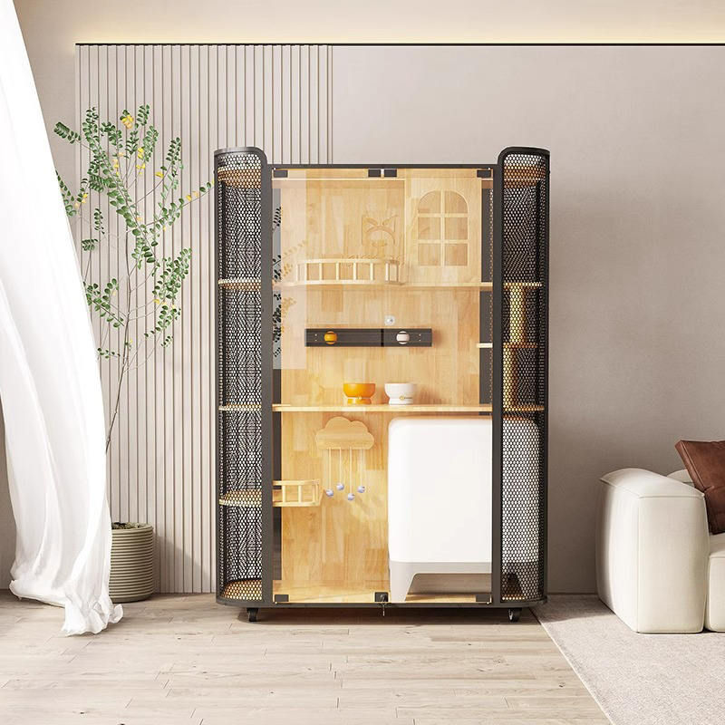 Kauçuk Ahşap Kedi Evi Dolabı Panoramik Villa Kafesi